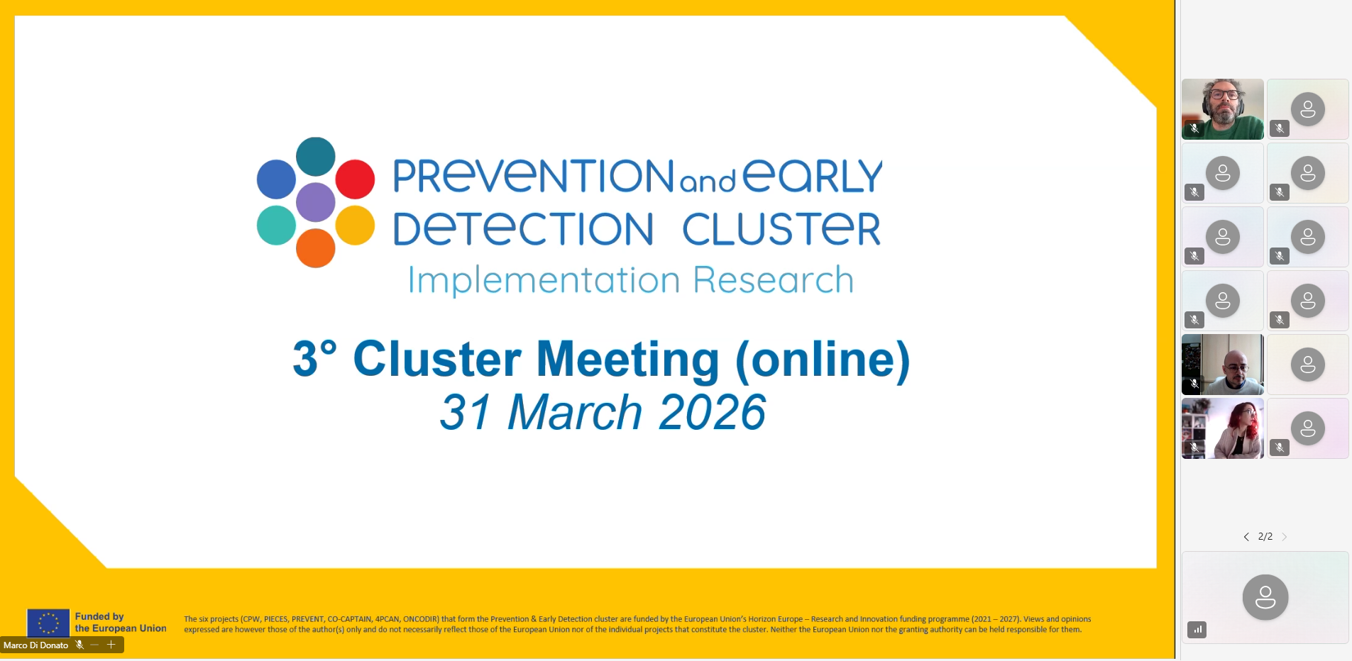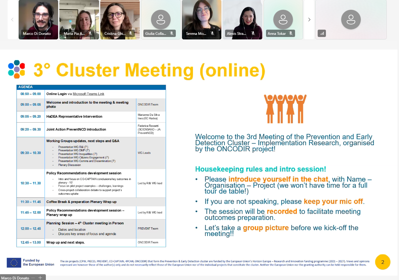 31 March 2026 – The third meeting of the Prevention and Early Detection Cluster – Implementation Research successfully brought together approximately 70 key stakeholders in a dynamic virtual forum hosted by ONCODIR.