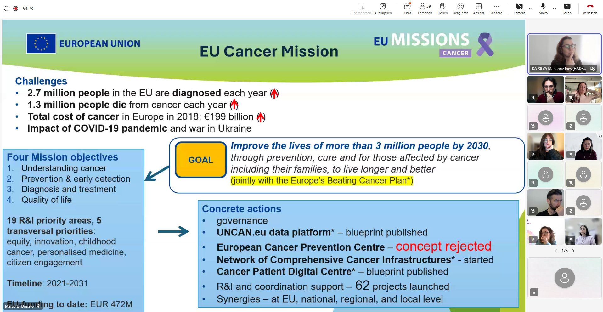 The meeting served as a vital touchpoint for aligning research efforts with the broader goals of the EU Mission Cancer, focusing on the practical application of scientific findings to improve public health outcomes across Europe.